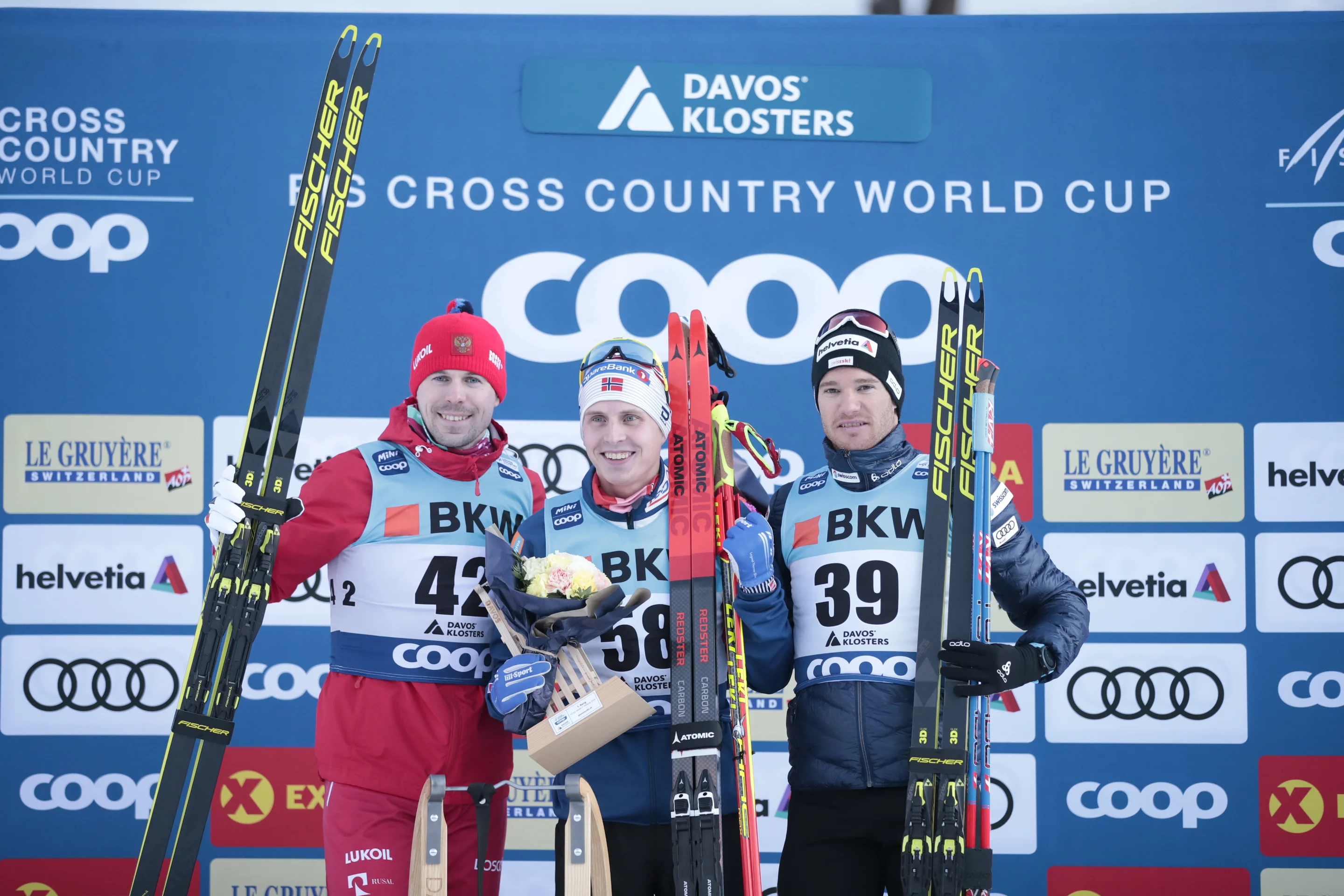With the latest snowfall and the according temperatures, the legendary 15km track of Davos Nordic became even a little faster in the afternoon for the mens race. Constant focus, strong legs and endurance was the recipe for the set menu. Kruger praised his skis who helped him to ski +19 seconds ahead of successor Sergey Ustiugov (RUS) who well knows the course and conditions of Davos. However, Ustiugov was contested by Davos naitive and Swiss Cross-Country superstar Dario Cologna. Ustiugov had a constant +-5 second margin to the Swiss which got smaller and smaller towards the finish line. The Swiss proudly took the third spot on the podium only +1 second behind Ustiugov.