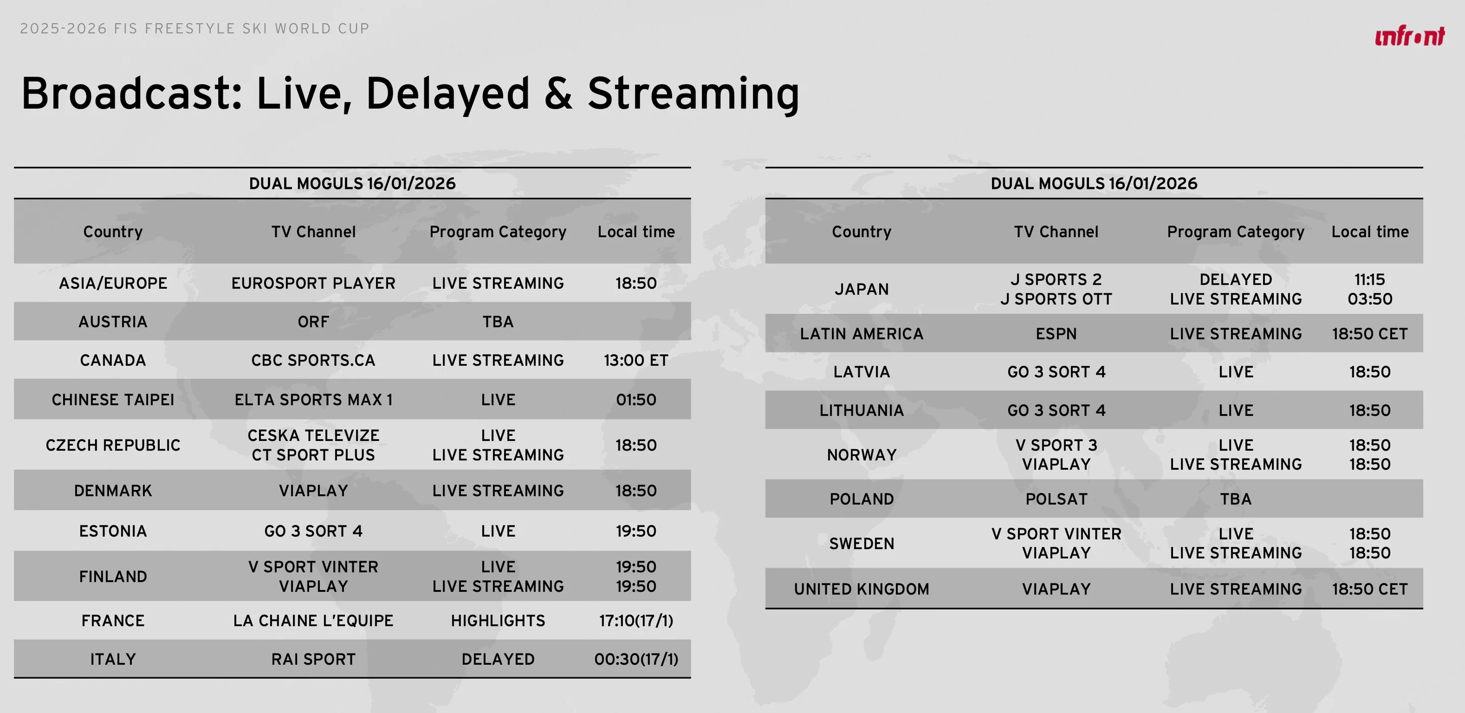 TV broadcasts will be available for fans to follow the action live, while there will also be live streaming on FIS TV.
